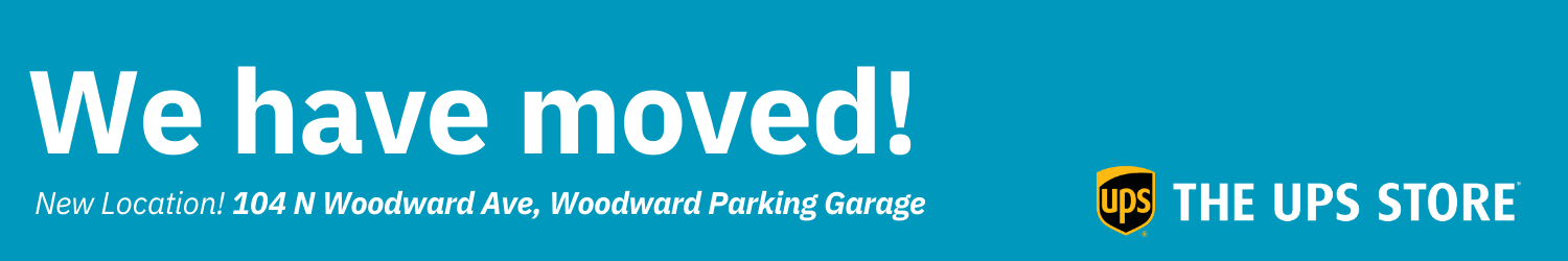 Yes. The physical pickup location for The UPS Store is moving. Beginning Tuesday, January 20th, package pick-up and in-person services will be available at the new location: 104 N Woodward Ave Woodward Parking Garage
